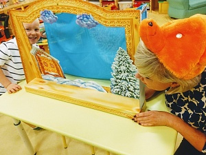Лисичка: Смотрите, сундучок открылся, но сказок в нём нет.