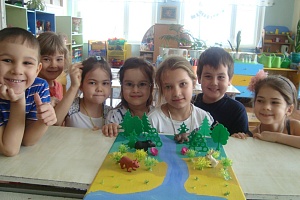 В игре «Загадочная тропинка» дети устанавливали взаимосвязи между особенностями внешнего вида объектов природы и приспособлением к окружающей среде. Также с детьми проводились викторина «Нашу рыбку изучай, на вопросы отвечай», подвижные игры «Рыбак и рыбки», «Рыбка-рыбка», этюды психогимнастики «Земля-вода», «Волны». Отдельная беседа проводилась с детьми об экологической проблеме Волги. Крупные и небольшие города, стоящие на берегах реки имеют много предприятий и заводов. Не на всех заводах стоят хорошие современные очистные сооружения и фильтры. Сбросы отходов в реку загрязняют воду, что неизбежно сказывается на её обитателях. Все люди, живущие возле реки или приезжающие отдохнуть, порыбачить, должны выполнять правила по охране природы. Дети обсуждали эти правила в экологической игре «Разрешено, запрещено». Ребята знакомились с художественными произведениями, стихотворениями «О, Волга! Колыбель моя!..» Н. Некрасова, «Слово о Волге» Я. Белинского, слушали записи песен «Волга-Волга» И. Дунаевского, песню «Течет река Волга» в исполнении Л. Зыкиной. Исследовательская работа с детьми проводилась в тесном сотрудничестве с семьей. В свободной художественной деятельности дети лепили животных – представителей разных климатических зон для оформления макета реки Волги.