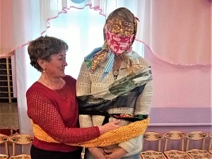 Мама: Ты почему уши развесил? Как не стыдно! Сколько раз тебе повторять: во взрослые разговоры вмешиваться нельзя! (Психолог завязывает «ребёнку» шарфом уши.)