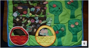 6-я страница. Съёмные детали: грядки с пуговицами, с прорезями, с кнопками, изображения овощей и фруктов, корзинки с прорезями (фото 6).