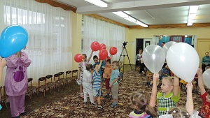 Лунтик: Спасибо, ребята и уважаемый Профессор Почемучкин и Стекляшка. Я удивлю Кузю опытом «Реактивный шарик». Я думаю, что он будет в восторге! Спасибо! (Лунтик дарит детям подарки: цветы из воздушных шариков.)