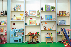 Игровая разделена на удобные зоны, обеспечивающие деткам разного возраста оптимальное пространство для самореализации. Зона для грудничков вмещает в себя развивающий коврик, качели, шезлонг и манеж; зона ролевых игр – кукольный дом с семьей, театр, медицинский набор, магазин, стойку юного мастера с инструментами и прочие интересные игрушки; активная двигательная зона порадует даже самых заводных малышей — бассейн с шариками, полоса препятствий из матов, мячи… Малыши имеют возможность играть во всевозможные игры и игрушки, читать красивые книжки, рисовать и конструировать. Это ли не воплощённая мечта каждого из ребят! Подобное зонирование и возможность менять игры позволяет маленьким посетителям постоянно находиться на пике интереса и всесторонне развиваться.