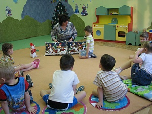 Психолог: Где же в группе могут быть сугробы? (Выражает недоумение.) Разве здесь есть что-то похожее на них? (Дети осматривают игровую комнату и замечают на полу около ёлки подушки.)