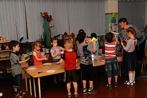 Воспитатель: Ребята что случилось со сказочными персонажами? Мы сможем помочь? А как мы этот сделаем? Надо отправиться в страну света и тени и найти героев. Все готовы? В путь! Повернись, повернись, в стране света и тени очутись. (Приглушается свет, воспитатель светит фонариком на потолок. Свет включается.)