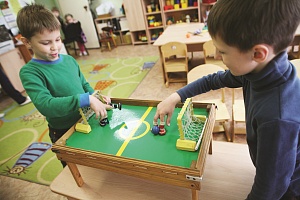 Игры адаптированы для дошкольников. Размер игрового поля и все атрибуты к ним подобраны с учётом возраста. Комплект «Стадион на столе» компактный: все четыре игры трансформируются на одном игровом поле — мини-столе. Для организации самостоятельной двигательной деятельности комплект можно использовать, как в помещении, так и на воздухе. Продолжительность игровой деятельности 25–30 минут.