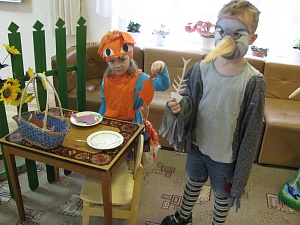 А на этапе самостоятельной творческой деятельности мы ставим спектакли, привлекая родителей и детей для создания костюмов и реквизита. Недавно мы ставили спектакль в стихах по сказке «Лиса и журавль». Он был показан сначала в нашей группе, а затем и для детей других групп. После спектакля было обсуждение поведения героев и в том, что зрители младших групп поняли основную мысль спектакля, — заслуга наших артистов.