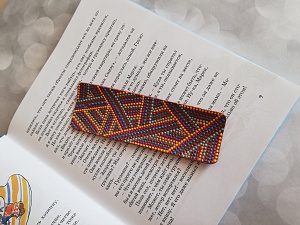 После того, как вся поверхность закладки будет заполнена точками, мы ждём высыхания краски. Затем покрываем нашу закладку акриловым лаком в 2 слоя с обязательной просушкой между ними. Наносим лак с помощью кисточки тонким слоем. Затем ждём его высыхания. Закладка готова! Теперь её можно вложить в любимую книгу, и чтение станет ещё более приятным. Таким же орнаментом можно расписать кожаный ежедневник, тогда получится оригинальный и эффектный комплект аксессуаров.