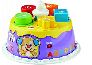 Развивающая игра Fisher Price «Торт с волшебными огоньками». Торт является сортером: каждому отверстию соответствуют дополнительные элементы, подходящие по форме. Когда у малыша получится взять нужный элемент и положить его в торт, поместив в правильное отверстие, свеча загорится определённым цветом. Сбоку торта расположена кнопка в виде щенка, нажав на неё, малыш узнает новые фразы, послушает стихотворения или песни. Всего их более 60-и.