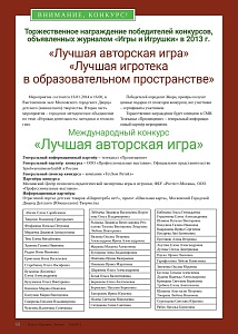 Торжественное награждение победителей конкурсов, объявленных журналом «Игры и Игрушки» в 2013 г.