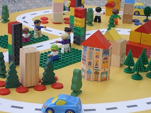 Второй уровень можно использовать как «Автогородок», где мальчишки и девчонки могут изучать правила дорожного движения и овладевать искусством безаварийного управления различными транспортными средствами, что очень актуально в наше время. Или выступить в качестве архитекторов и строителей для создания современного, футуристического или волшебного города.