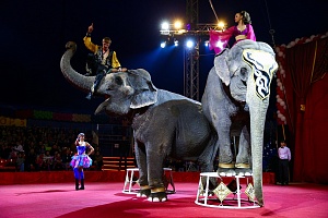 Артисты Цирка больших зверей непростые, что ясно из самого названия. Например, индийские слонихи Дженна и Магда являются рекордсменами – самыми большими четвероногими цирковыми артистами. Сейчас они в самом расцвете сил – им 46 лет (слоны живут до 90 лет), и весят они больше 5 тонн. Каждый день слонихи съедают по 150 килограмм корма. Очень любят каши, овощи и фрукты, но самое любимое их блюдо – дубовые веники и жёлуди. Каждая из слоних может съесть по 50 веников в день. Как у истинных женщин, на ногах Магды и Дженни сверкает педикюр. Но обычный салон с такой задачкой не справится. Делают педикюр слонихам большим рашпилем напильником): сначала стирают верхний слой, зачищают наждачкой, а потом красят белой водоэмульсионной краской. Почти строительные работы! Но модницам это нравится.