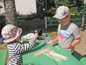 Для игры «Тырыынка» нужно подготовить палочки длиной до 10–12 см, толщиной около 2 мм. Традиционно их делали из ивовых прутьев, но городским жителям проще всего использовать деревянные шампуры, которые продаются в любом супермаркете. Палочек должно быть столько, чтобы ребёнок мог легко обхватить их пальцами, по нашему опыту, это около 50 штук. При большем количестве игра становится менее динамичной.