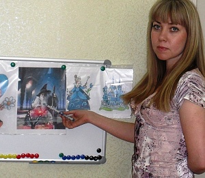 Опорные картинки, стилизованные изображения реальных предметов, карточки-символы помогают воспитанникам выстроить логичный, последовательный рассказ (содержащийся в стихотворном тексте). Параллельно, в процессе работы над стихотворением проводится словарная работа над лексическим значением слов. Данный вид работы активизирует мыслительную деятельность, слуховой, зрительный и тактильно-двигательный анализаторы, которые часто выступают как компенсаторные механизмы.