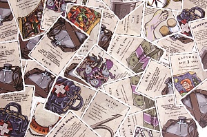 - 42 карты припасов: от воды до весла, от пистолета до компаса;