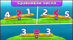 Бесплатная образовательная программа, чтоб малыши могли обучаться цифрам и другим математическим задачам. Приложение, с помощью которого дети научатся определять цифры, складывать и вычитать. Есть уровни, где ребята научатся сравнению, с помощью групп больших и маленьких предметов. Также есть подсчёт предметов, где нужно будет нажать недостающую цифру. Викторина поможет проверить полученные знания и умение малыша. Детям нравятся паззлы на недостающие знаки. Интерес и стимул добавляют наклейки, которые игрок может зарабатывать. Задачи понятны для детей, им не приходится звать на помощь маму, чтоб спросить, что надо делать. Есть переходы с одного уровня на другой. Приложение привлекает своей простотой и эффективностью. Рисунки понятные, не перегружены дополнительными ненужными деталями и элементами, дающими нагрузку на глаза. Кстати, родители могут отслеживать успехи своего прилежного и старательного ученика, а также руководить ходом обучения, проверять набранные очки, понижать или повышать уровни сложности.