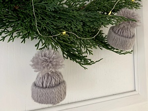 6. Вот и всё, уютная шапочка готова! Любуемся результатом, показываем своим близким и приступаем к изготовлению следующего декоративного элемента, ведь если шапочек будет достаточно, ёлка или новогодняя гирлянда будут выглядеть по-зимнему нарядно!