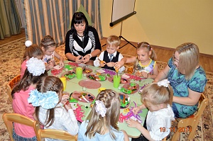 2-й ведущий: Смотрите, ещё перья! И на них чего-то не хватает. (Детям предлагают украсить перья в художественно-продуктивной деятельности, и они декорируют перья 2-го вида пайетками.)