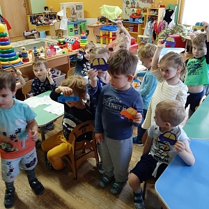 Воспитанникам предлагается сложить пирамидку от самого большого элемента до самого маленького. Детей лучше посадить парами. Так они смогут посоветоваться и помочь друг другу построить пирамидку. В конце игры попросите одного из пары назвать цвета от самого большого элемента до самого маленького, а другого наоборот – от верхушки до основания пирамидки. Затем попросите детей собрать пирамидку так, как им нравится, как, им кажется, будет красиво и правильно. В конце занятия все показывают свои пирамидки.