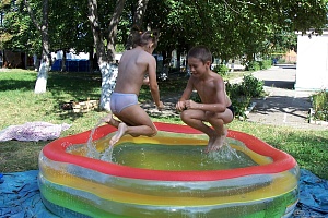 На площади бассейна плавают маленькие бумажные кораблики. Командам раздают «пушечные ядра» — мячики. Задача участников — потопить как можно больше кораблей соперника.Варяги