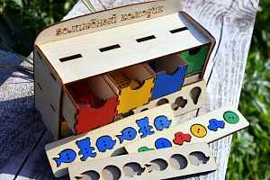 «Волшебный комодик» — это развивающая и обучающая игрушка от ТМ Smile Decor, которая появилась у Феди, когда ему исполнилось полтора года. В инструкции было указано, что игрушка предназначена для детей старше трёх лет (наверное, потому что имеются мелкие детали, а маленькие дети так и норовят их попробовать на вкус). В связи с этим комодик был убран в шкаф подальше от его глаз. Но однажды малыш увидел новую игрушку, и, конечно же, сразу захотел её изучить.
