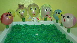 По завершению продуктивной деятельности, детям предлагается игра-инсценировка с обычными однотонными шарами.