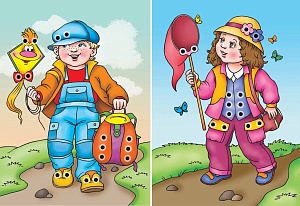 - Посмотри внимательно на картинку. Расскажи, кто изображён на рисунке. Какая одежда на мальчике? Какая на нём обувь? Какого цвета? Назови предметы, которые нарисованы на картинке.