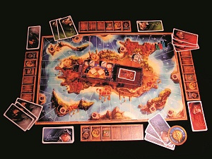 Каждый капитан получает комплект карт одного цвета, трюм, а к нему фрегат. Составляем колоду карт сокровищ и выкладываем её в центр поля. Рядом располагаем два кубика событий, а в форт — боевой шестигранник. В каждой Бухте Черепа располагаем жетон сундука — он обозначает зарытые сокровища.Возьмите три карты из индивидуальной колоды и изучите их до того, как отправитесь в плавание. Не показывайте их никому! Первый игрок получает компас, который будет передаваться по кругу от капитана к капитану, определяя очерёдность хода. Корабли готовятся к отплытию со стартовой позиции — из порта Royal. Перед тем как отчалить, запомните, что каждое отделение трюма может вместить сколько угодно жетонов одного типа. Но соблюдайте жёсткое правило — перекладывать из отделения в отделение груз запрещено!