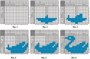На Рис. 1 представлена головоломка с зашифрованным изображением лебедя. Напомним, что числа, расположенные слева и сверху от этого изображения, указывают количество закрашенных подряд клеток. Если чисел на одну строку или столбец несколько, то мы имеем дело с несколькими группами таких клеток. Например, числа 3 и 6 в столбце В указывают на то, что в нём расположены две группы подряд закрашенных клеток: верхняя, состоящая из трёх клеток, и нижняя — из шести. Группы должны быть разделены промежутком, минимум в одну пустую клетку. Аналогичная кодировка применяется и для строк.
