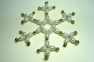 Чтобы облегчить педагогам подготовку к таким интересным, но очень трудоёмким по организации занятиям, предлагаю воспользоваться готовыми наборами бусин на новогодние сувениры. Начало каждого изделия выплетено, подробная схема вложена. Коллекция уникальных дидактических материалов к опубликованным схемам представлена в интернет-магазине журнала «Игры и Игрушки».