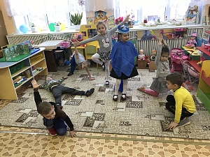 Воспитатель: Ребята, я слышу, к нам кто-то ещё идёт. Интересно, кто это?