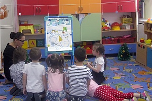 - Разучивание упражнения «Снеговик» на развитие координации слова с движением, воспитание плавной, напевной речи.