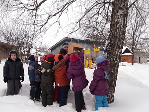 Ход. На доске — пять-шесть картинок с изображением зимующих птиц. Дети закрывают глаза, а воспитатель незаметно убирает одну картинку и спрашивает детей, когда они открывают глаза: «Какой птички не стало»? Дети смотрят и отвечают.Воспитатель. Зима — очень трудное время года для птиц, особенно если она морозная и снежная. Ребята, а как мы можем помочь птицам зимой? (Сделать кормушку и подкармливать птиц.) Вы знаете, что на нашем участке мы повесили кормушку и насыпаем в неё корм. Может быть, за зиму мы спасём не одну птицу. А летом птицы помогут нам, они будут поедать насекомых-вредителей и продолжать охранять сады и парки.