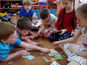 В моём коробе перепутались элементы разных росписей. Постарайтесь выбрать те, которые есть в нашей карельской росписи. (С детьми проводят игровое упражнение «Найди карельскую роспись».) Молодцы! Давайте теперь поиграем в игру «Шёл козёл по лесу». (Дети с воспитателем играют в подвижную игру.)