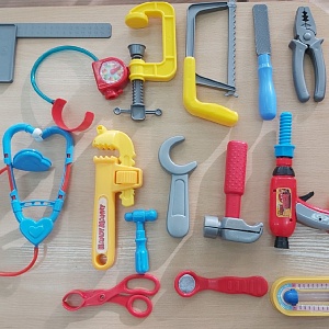 - набор игрушечных плотницких инструментов и инструменты для других профессий;