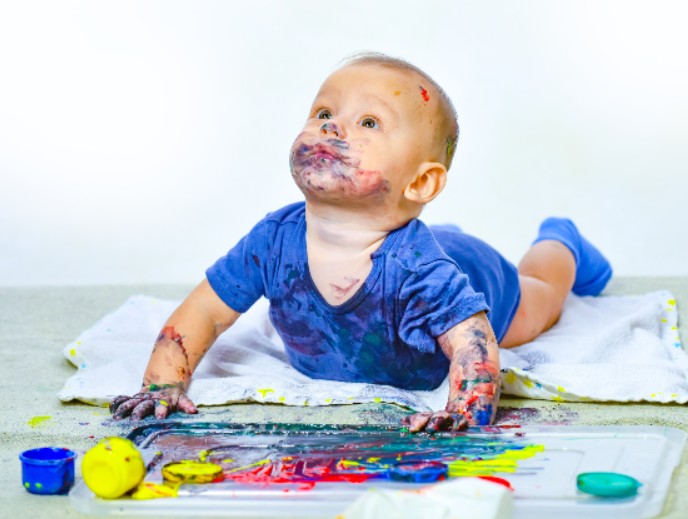 Основой для организации совместного творчества является взаимодействие ребенка с взрослым. Ребенок в возрасте 6 месяцев уже готов к совместной деятельности с красками. Находясь рядом с матерью, он ощущает уверенность в своих силах и смело исследует новый объект (краску), осваивая способы ее использования. Взрослый (инструктор) выступает в роли партнера в этом процессе. После 6 месяцев, особенно в возрасте 8-10 месяцев, ребенок начинает лучше понимать речь взрослого и быстро осваивает, что можно делать с краской. Эмоциональный фон занятий остается крайне важным, как и в первые полгода жизни. Маме необходимо наладить контакт с ребенком, постаравшись избежать негативных эмоций.