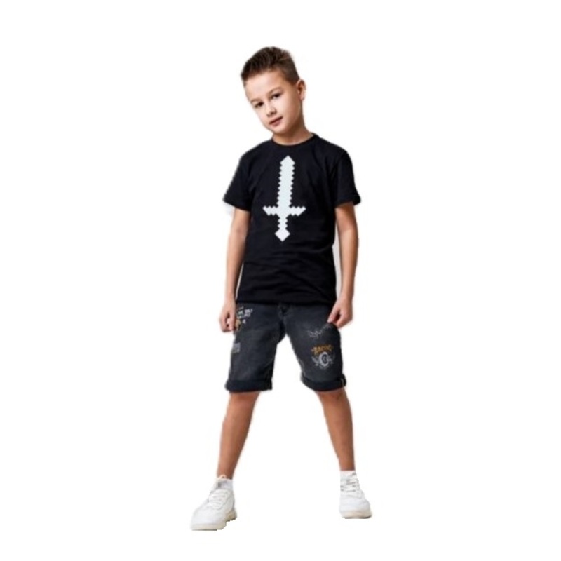 Футболка чёрного цвета с лаконичным и контрастным светлым рисунком будет уместно смотреться практически где угодно: в садике, школе, на прогулке, тренировке, вечеринке с друзьями, празднике. Футболка изготовлена из качественного хлопка, швы аккуратно прошиты. Её можно стирать как обычно, главное гладить с изнаночной стороны и не прикасаться утюгом к принту.