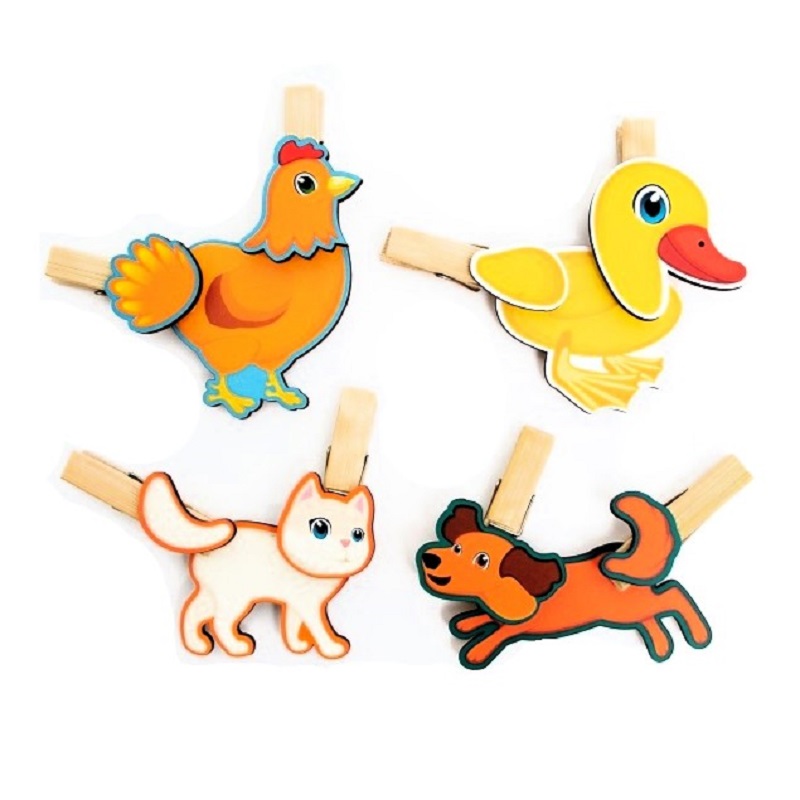 Игра с прищепками «Собери домашнее животное» изготовлена из дерева – экологически чистого и гипоаллергенного материала. Товар в ассортименте.