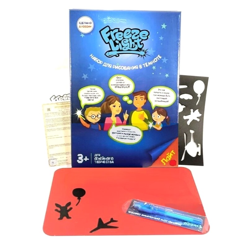 Набор для рисования светом Freeze Light, формат А4. С помощью ручки-фонарика и планшета со слоем люминофора вы и ваш ребенок научитесь рисовать по-новому! Cерия планшетов «Лайт» для рисования светом - это облегченная версия стандартных наборов.