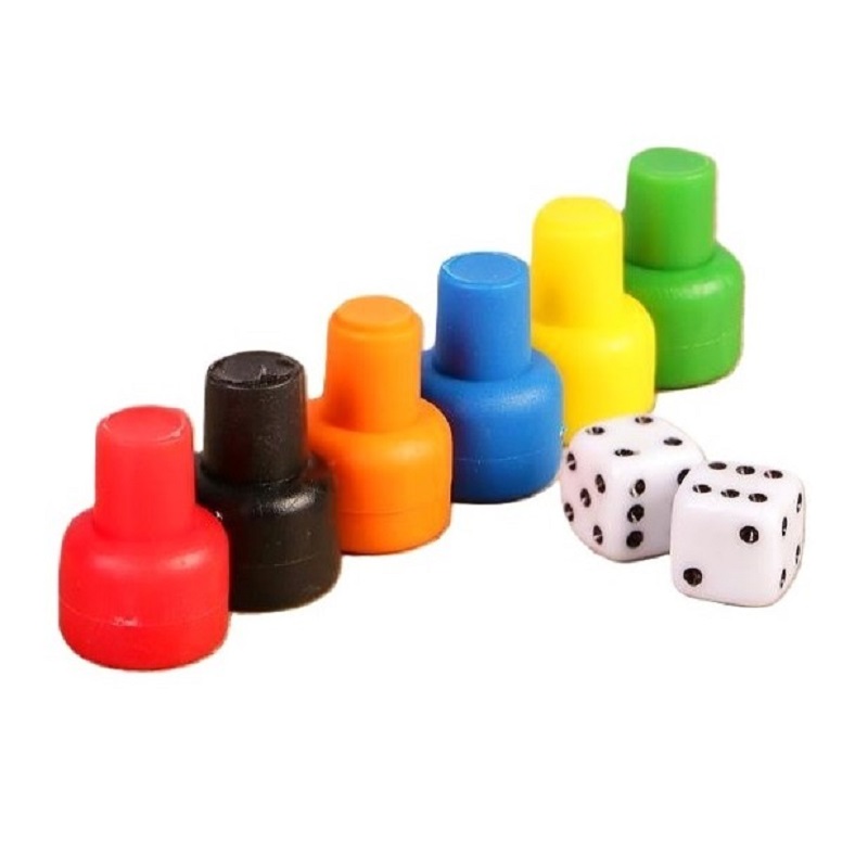 Очень часто происходит так, что в процессе игры в настольные забавы теряются необходимые фишки и кубики, а находчивые любители настолок используют различные неподходящие мелкие предметы из бабушкиной шкатулки вместо них. Отличным запасным вариантом станет набор из шести фишек с двумя шестигранными кубиками. Фишки красного, чёрного, жёлтого, оранжевого, синего и зелёного цветов выполнены из качественного нетоксичного пластика без постороннего запаха. Они абсолютно безопасны и гипоаллергены, устойчивы и удобно удерживаются в руке.