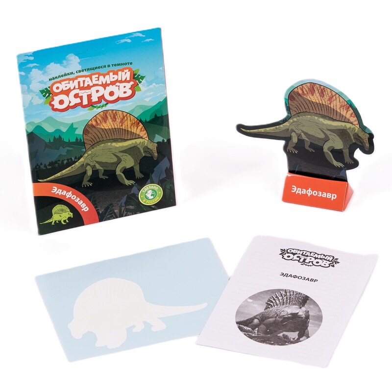 Набор «Обитаемый остров» от компании «Планета» упакован в яркий дизайнерский конверт. Внутри вы сможете найти: картонную фигурку динозавра, подставку для игрушки, наклейку с изображением птеродактиля, светящуюся в темноте и небольшую брошюру, в которой подробно дано описание этого вида древних ящеров. Набор предназначен для детей от 3-х лет.