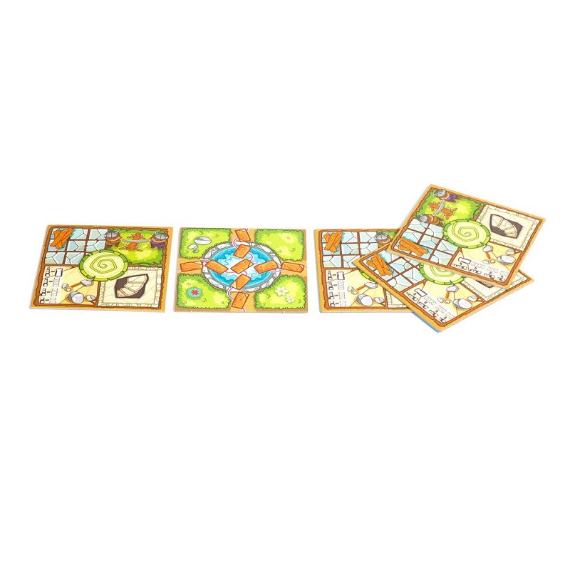 В игровой комплект входит: игровое двустороннее поле, башни замка – 13 шт, фундаменты – 4 шт, кирпичи – 20 шт, кубики – 5 шт, правила игры, монстр, пирог. Игра упакована в красочную упаковку размером 24,5 х 24,5 х 6,5 см.