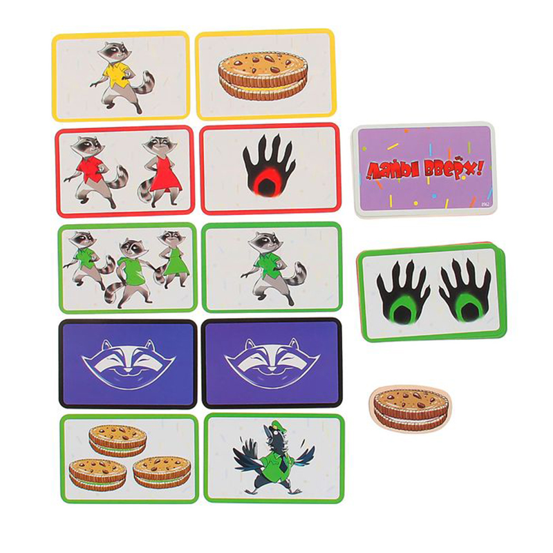 По факту карты можно класть игрокам как угодно, главное среди них увидеть те карты, которые подходят под проверку, и схватить печеньку. Если игрок прав, то раздает все карты всем участникам, если ошибся, то забирает карты себе. Игра заканчивается, когда игрок избавляется от своих карт и тех открытых карт, что перед ним. Так же в игре есть специальные карты для большей динамики игры. Мы пока только начали в нее играть и играем без них.