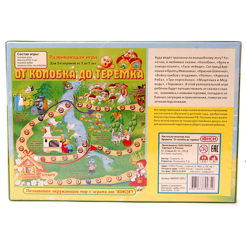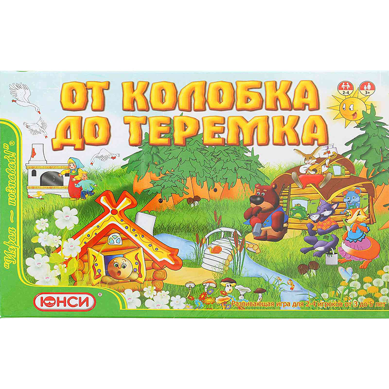 Издательство настольных игр "ЮНСИ" с 1992 года радует своих покупателей разнообразием игр для всей семьи. Одной из многочисленных настольных игр издательства является простая и красочная игра-ходилка для самых маленьких "От колобка до теремка".