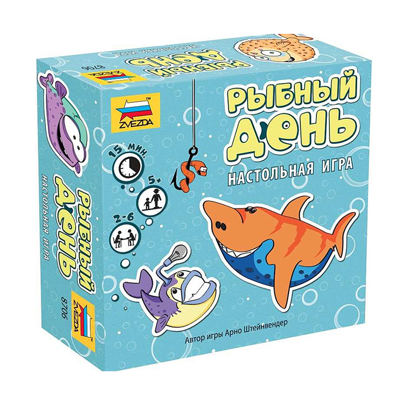 Настольная игра "Рыбный день ТМ “Звезда” - это увлекательное развлечение для всей семьи. В игре могут участвовать от 2 до 4 игроков. Каждый игрок получает по 6 фишек рыб разного цвета. Игроки бросают кубик и двигают свою фишку по полю, пытаясь поймать как можно больше фишек противника. Выигрывает тот игрок, который поймает больше всего фишек. Игра развивает логическое мышление, координацию движений и внимание. Отличная тренировка наблюдательности юных рыболовов. Такую рыбалку хочется повторить. Состав игры: карточки (32 шт.), правила игры. Количество игроков: 2-6. Время игры: 15 мин. Не рекомендуется детям до 3-х лет. Содержит мелкие детали.