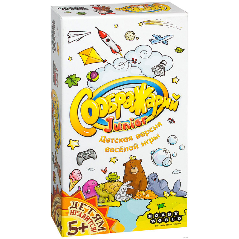 Это несколько иное представление известной хитовой игры «Соображарий», здесь необходимо подбирать слова, соответствующие красочным иллюстрациям на карточках с заданиями. Например: Кто из игроков первым назовёт животное на «М»? Или одежду на букву «И»? Или может нечто квадратное на букву «Р»? А может быть даже кто-то готов назвать четыре предмета, которые начинаются на букву «Н» и не тонущие в воде. Сначала детям может понадобиться помощь взрослого, потом они могут состязаться самостоятельно.