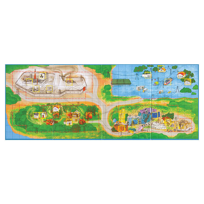 В состав комплекта входят: игровое картонное поле, таблица "Спасательная техника", карточки (49 шт), игральный кубик, иллюстрированная брошюра с правилами игры. Игра рекомендована для детей возраста от девяти лет и старше (9+). Максимальное количество участников – четыре человека.