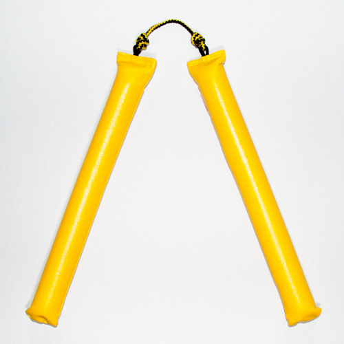 Нунчаки выглядят как две палки (длина каждой части 30 см), соединённые между собой плетёной веревкой, концы которой закреплены на верхней части каждой боевой секции. Длину верёвки можно регулировать. Вес игрушки 60 гр. Оружие безопасно, за счёт мягких элементов дети не нанесут травмы ни себе, ни окружающим. В таком варианте ими можно пользоваться дома и на улице, их можно смело вращать, проделывая разные упражнения, предусмотренные для этого спортивного снаряда. Занимаясь с нунчаками, ребята развивают ловкость, внимание, реакцию, координацию, приобретают новые навыки, тренируют моторику, знакомятся с историей. Игрушка может стать частью соревновательного процесса, наглядным пособием для изучения снаряда, частью снаряжения. Отлично подойдёт в качестве подарка мальчику на любой праздник.