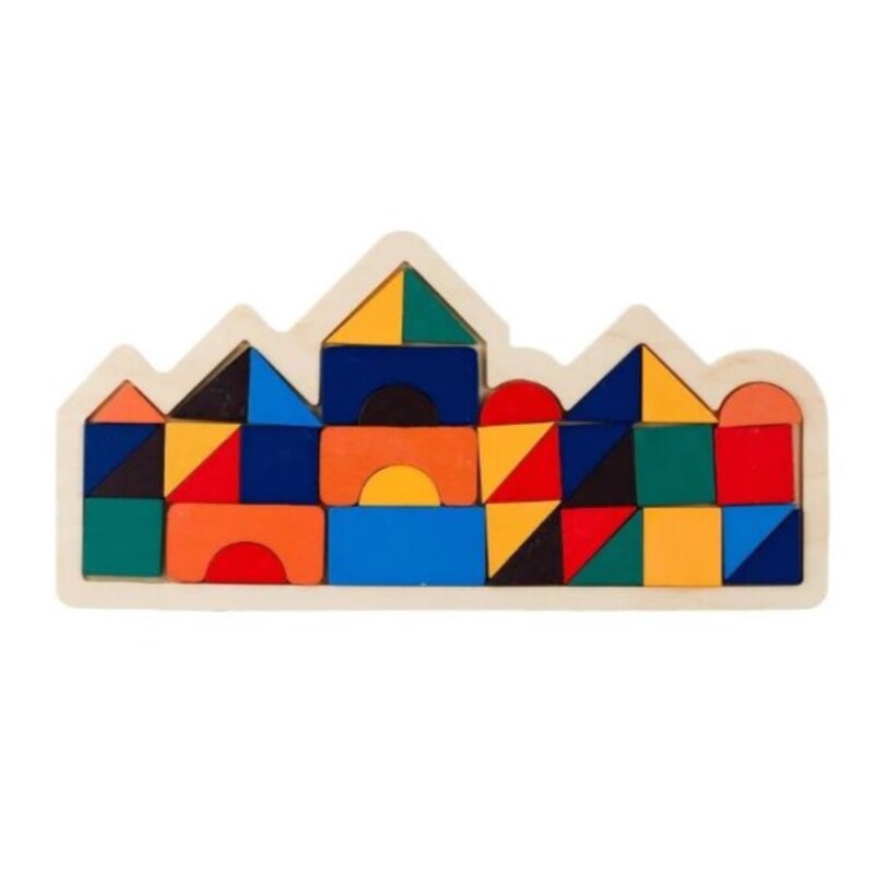Многофункциональная игрушка включает в себя многоугольную деревянную основу. Она разделена на девять частей. Каждый отсек имеет углубление. В этих ячейках находятся разные геометрические фигуры, среди них: прямоугольники, треугольники, круг, полукруг, ромб. Все они окрашены нетоксичными красками на водной основе. Производитель использовал основные цвета: красный, жёлтый, синий, зелёный, оранжевый. Детали тщательно обработаны, не имеют сколов и заусенцев. Упакована игрушка в полиэтиленовую плёнку с вкладышем, на котором дана краткая информация о товаре и образцы сборки орнаментов. Суть игрового процесса заключается в том, что дети должны выполнить уже поставленные задачи (сложить фигурки по образцу), либо придумать свой вариант раскладки. Сложность заключается в том, что разработчиками предложено не единое игровое поле, а сразу несколько и ребятам придётся поломать голову, ища правильные ответы.