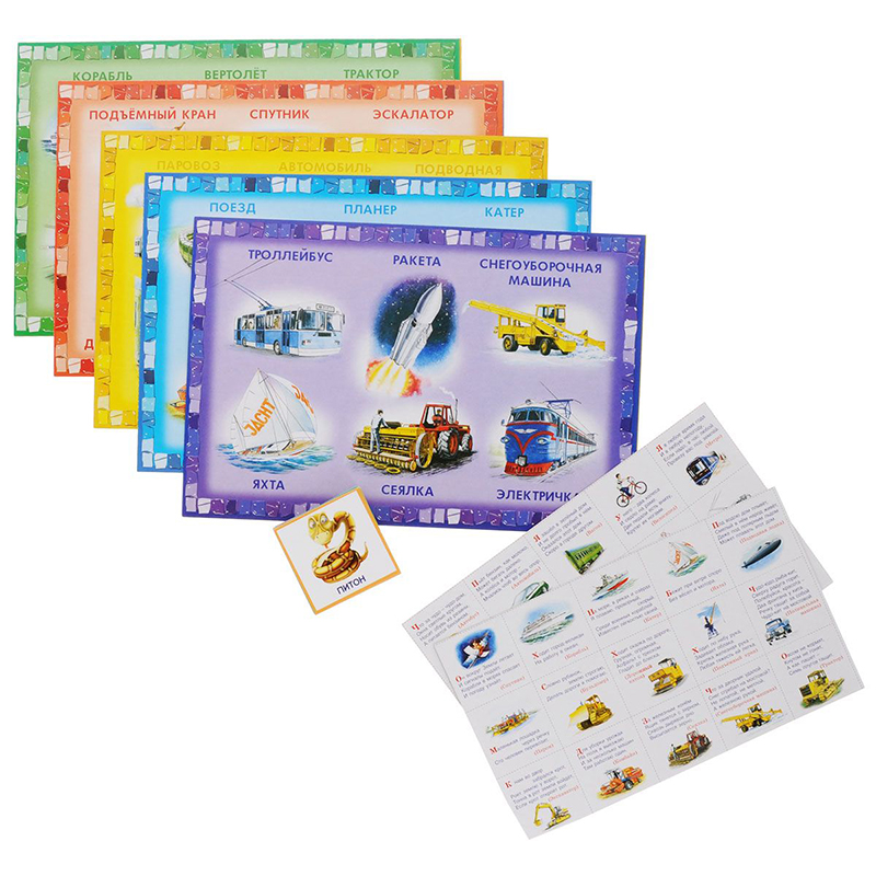Развивающее лото «Чудо-техника» входит в серию игр с правилами ТМ «ЮНСИ» для детей от трёх лет и старше. Настольная игра включает в себя: пять больших полей с яркими иллюстрациями транспортных средств (от автомобиля до ракеты); карточки с загадками (30 шт.), памятку, на которой представлена краткая информация о производителе и товаре. Все элементы настольной игры сделаны из плотного картона. Играть одновременно могут от 2-х до 5-и участников. Правила очень просты и понятны. Игроки кладут перед собой одну или несколько больших карт. Ведущий зачитывает загадку. Тот, кто её правильно отгадал и нашёл ответ на своём игровом поле, забирает её себе. Побеждает тот, кто быстрее всех справиться с задачей. Игра – увлекательная, способствует развитию памяти. Играя, дети расширяют свой кругозор, пополняют словарный запас новыми словами.