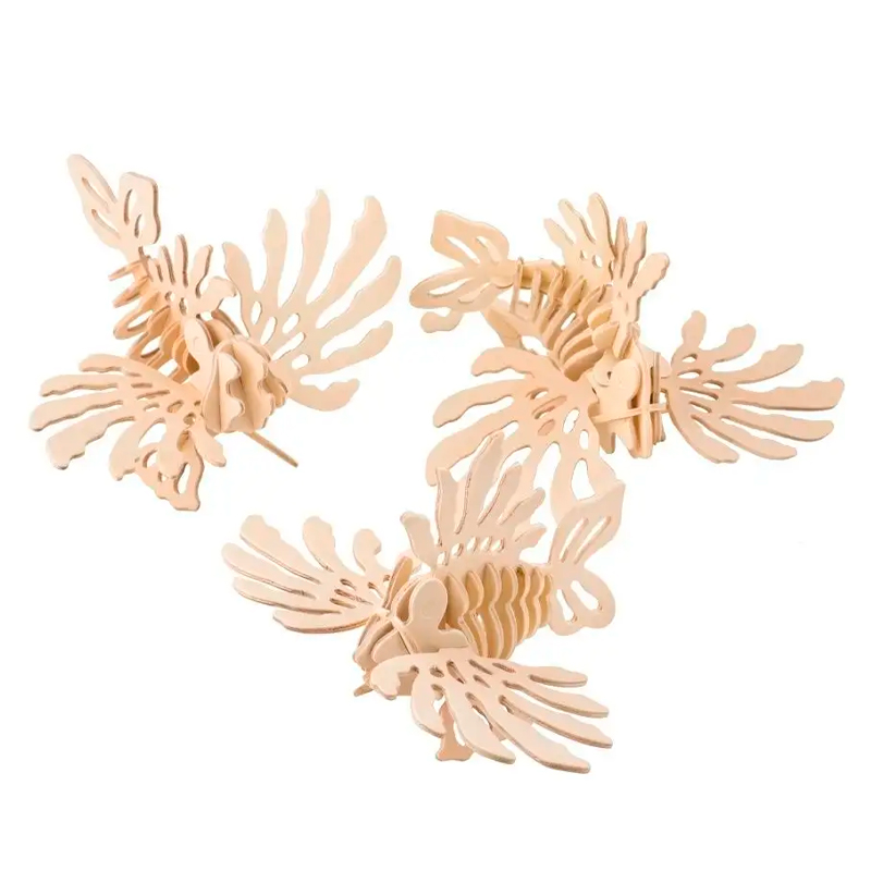 Пробовал ли ваш ребёнок себя в области моделирования? Если нет, то стоит удивить ребёнка и подарить ему один из многочисленных сборных моделей известного российского производителя «Чудо-Дерево». Например, творческий набор для детей пяти лет и старше (5+) «Рыбка-Лев» K002. Название набора говорит само за себя – это комплект деревянных элементов для создания обитателя морей и океанов.